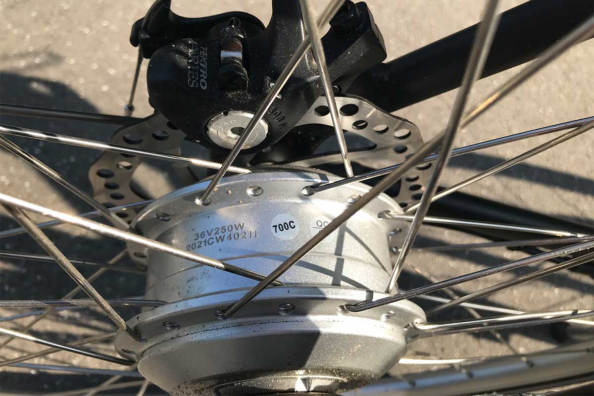 hat einen Radnabenmotor im Hinterrad mit einer für Pedelecs typischen Nennleistung von 250 Watt.