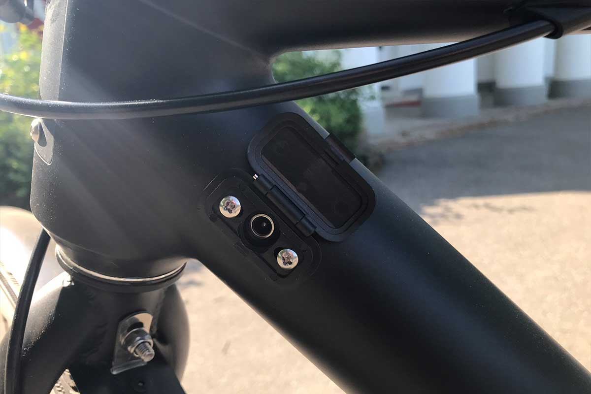 Die Batterie ist fest im Rahmen verbaut und nicht ohne Werkzeug entnehmbar. Ein Nachteil, der jedoch durch das geringe Gewicht des gesamten Bikes relativ gut ausgeglichen wird, da es so leicht, z.B. in die eigene Wohnung, zum Laden getragen werden kann.