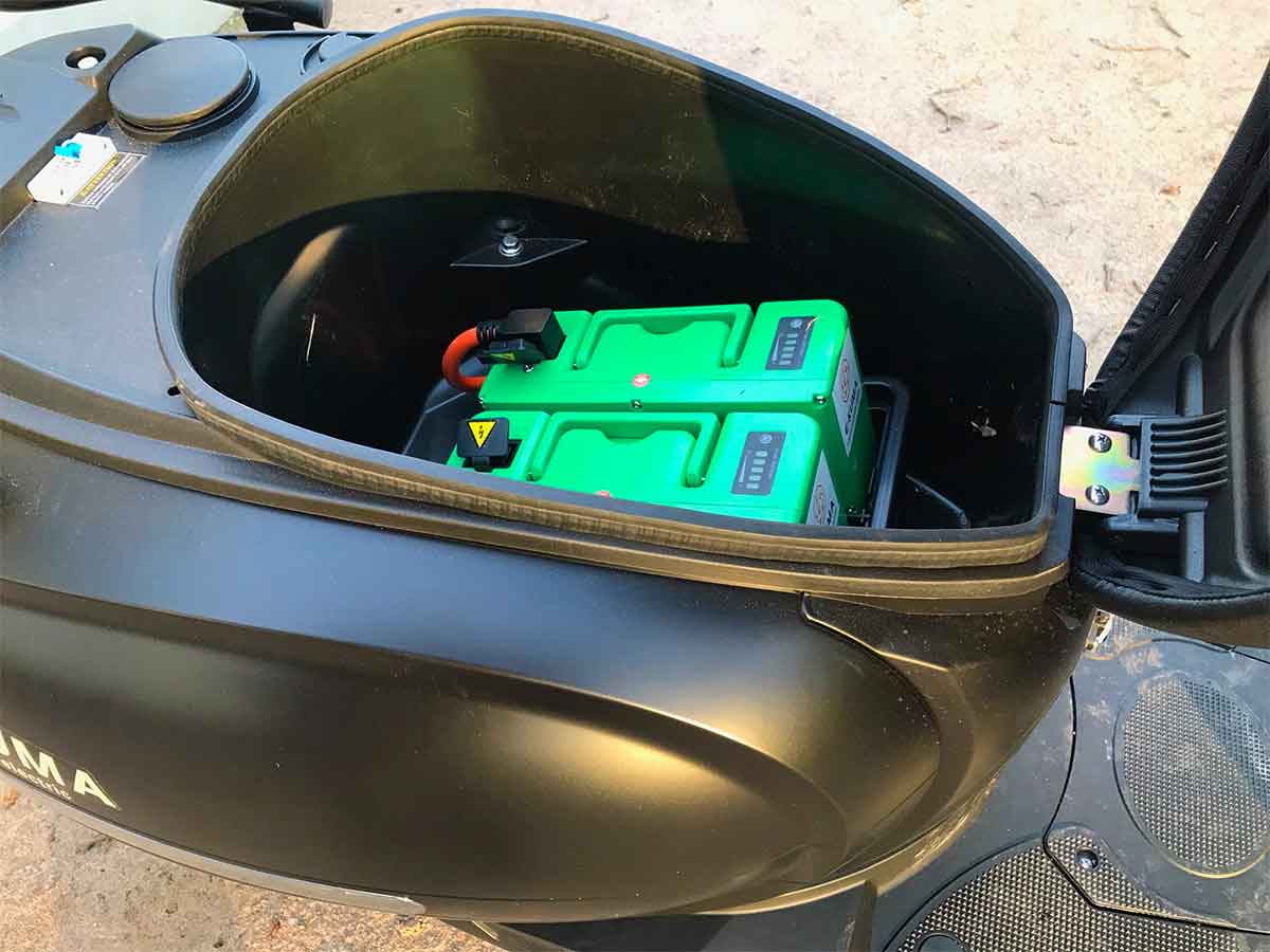 Aber wir empfehlen gleich zu einer zweiten Batterie zu greifen. Damit hat der Roller auch im Stop-and-go-Verkehr in der Stadt eine realistische Reichweite von wenigstens 70 Km. Das ist nach unserer Erfahrung der „Sweet-Spot“ für Elektroroller.