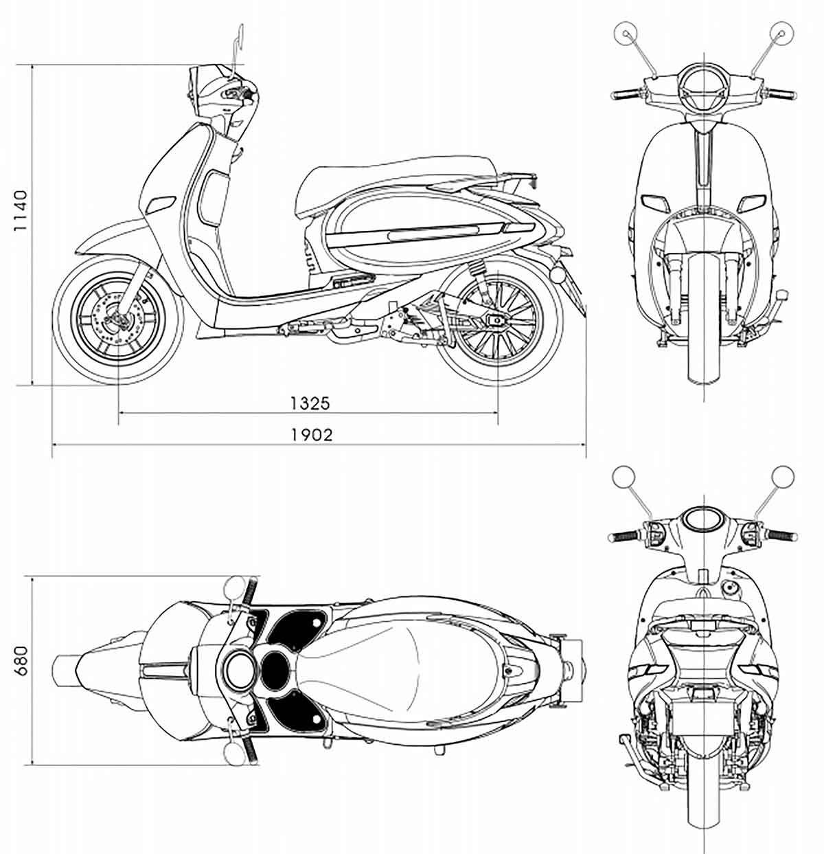 Es gibt den Roller auch mit mehr Leistung und höherer Höchstgeschwindigkeit. Diese Ausführungen benötigen jedoch andere Führerscheine und fahren in der L3e-Klasse.