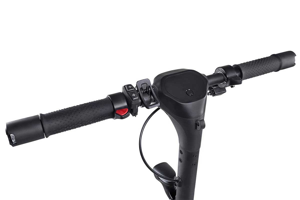 Sein Lenker ist mit rund 54 cm ohne Blinker etwa 10 cm breiter, als der des ePF-1. Mit Blinkern kommen nochmal sechs Zentimeter dazu.